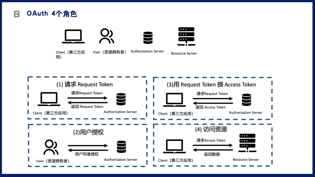 The system architecture of the OAuth framework has maintained a relatively stable four-role model throughout its evolution, but the implementation mechanisms and security assumptions at each stage differ significantly. The Resource Owner, the end user who owns protected resources, has consistently maintained ultimate authorization decision power throughout the evolution; the Client, the application requesting access to protected resources on behalf of the resource owner, evolved from trusted applications in OAuth 1.0 to classified management (confidential and public clients) in OAuth 2.0, and then to zero-trust assumptions in the PKCE era; the Authorization Server, responsible for verifying resource owner identity and issuing access credentials, evolved from OAuth 1.0’s dual-token mechanism of Request Token and Access Token, to OAuth 2.0’s separation of Authorization Code and Access Token, with OIDC adding ID Token as identity credentials, and PKCE adding additional verification mechanisms during authorization code exchange; the Resource Server, hosting protected resources and verifying the legitimacy of access requests, simplified from OAuth 1.0’s per-request signature verification to OAuth 2.0’s Bearer Token verification, with self-contained JWT verification possible in the OIDC era, while PKCE primarily affects token acquisition rather than the usage phase.